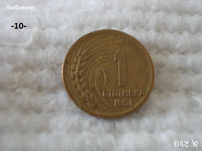 10. Стара монета 1 стотинка 1951 г. - 5 лв.