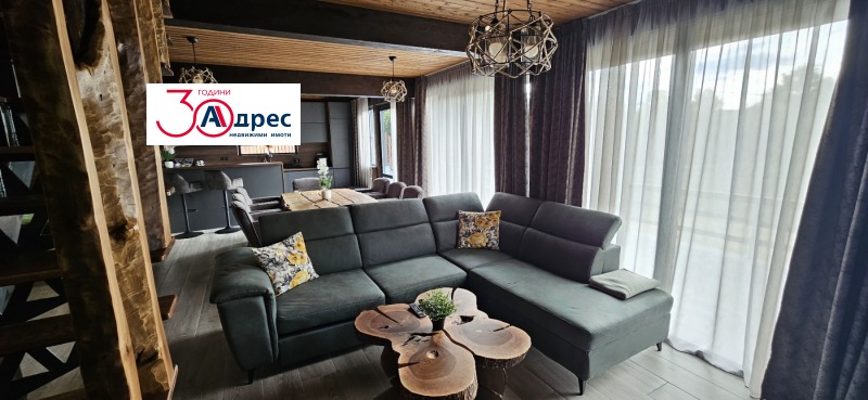 Луксозна дървена сглобяема къща, ново строителство -2025 г. Прекрасна панорама от слънчевата къща. Изработена е с австрийски BSH и KVH материал. Ламперията е внос, обработена с масла OSMО. Изолация от каменна вата knauf 2x10см и