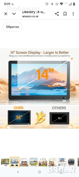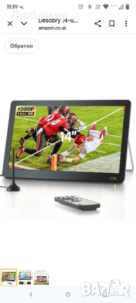 Desobry 14-инчов преносим телевизор с антена 1080P Freeview външен телевизор с DVB/T2 тунер, акумулаторна батерия, мини телевизор LCD, вградена стойка, HDMI вход, USB, AV.Преносим Full HD телевизор】14-инчов широкоекранен миниатюрен телевизор с подвижна антена за приемане на ATSC цифров безплатен телевизионен сигнал. Full HD 1080P резолюция на дисплея и вградените два високоговорителя ви осигуряват по-добро аудио-визуално удоволствие.