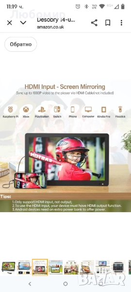 Kindle Fire и др. (Моля, уверете се, че мобилният ви телефон поддържа HDMI изход преди да поръчате, а телефоните с Android се нуждаят от допълнително захранване). Функцията AV вход позволява свързване на DVD плейър или проектор за възпроизвеждане на дискове.