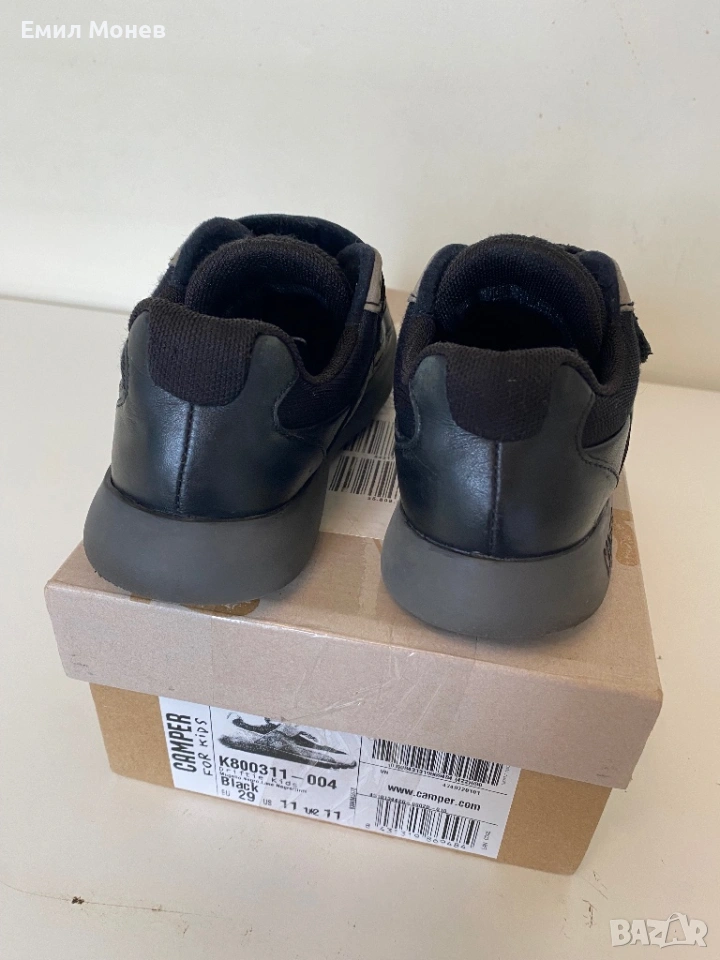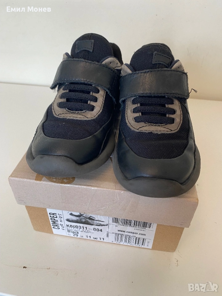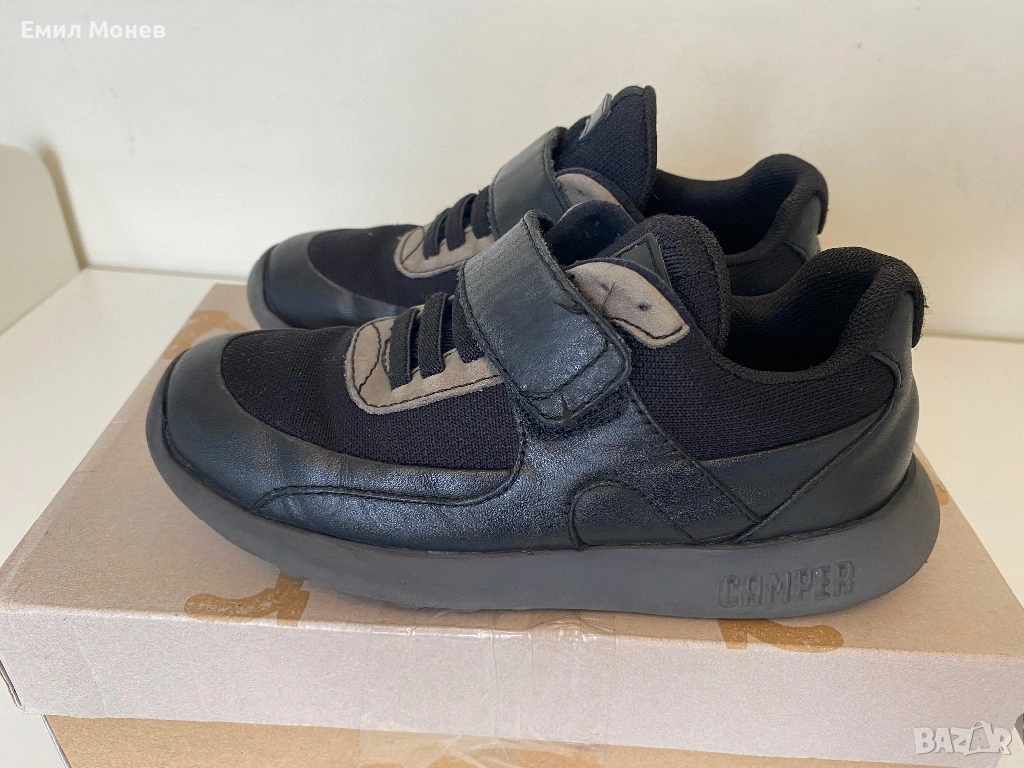 Детски спортни обувки Camper. Закопчаване с лепенки. Цвят: черни. Номер 29. Стелка 19 см. Цена 20 евро. Леки и анатомични. Състояние: отлично. Произведени са от естествена кожа, велур с мембрана за предпазване от студен въздух и влага във вътрешността на обувката. Подметката е в отлично състояние и гарантира перфектно сцепление.