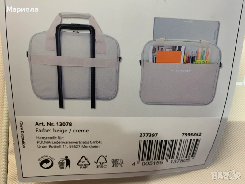 Elefan Чанта за лаптоп с 2 отделения / Бежово - Крем , elephant laptop bag → Обява 51972601
