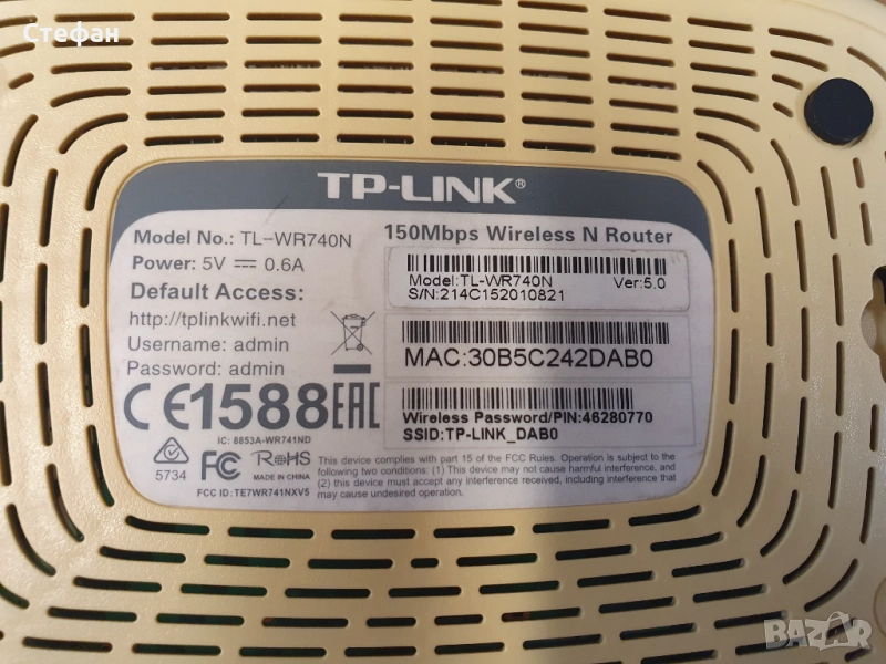 Рутер TP-Link TL-WR740N с адаптер и кабел. В отлично техническо състояние, добър външен вид.