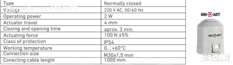 Електро задвижка INNOAKT за колектор за подово отопление INNOFLOW