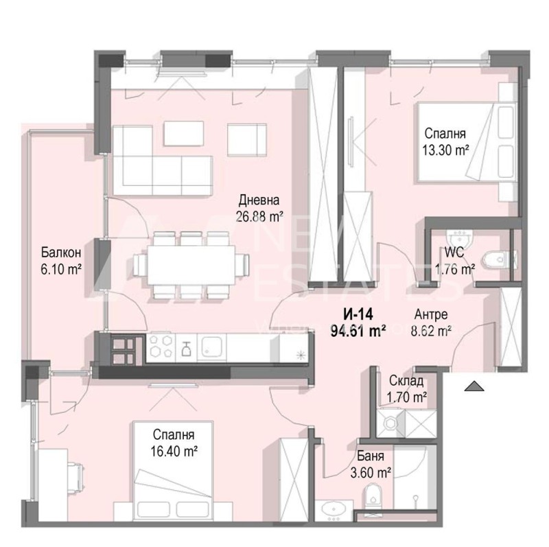 Представяме на Вашето внимание тристаен апартамент в луксозна, функционална и екологична жилищна сграда, ситуирана в Южната част на град София. Локацията е изключително комуникативна с осигурен бърз достъп, както до административната част на града, така и до редица културни, спортни и обществени зони. Комплексът е хармонично вписан между парк Витоша и градската среда на столицата. Поддръжката ще се осигурява от професионална компания, отговаряща за цялостния процес по почистване на общи части и фоайета, асансьори, озеленяване и аранжиране на парковата среда, сметоизвозване и снегопочистване. Сигурност - физическа охрана и видеонаблюдение. Ще бъде изградена съвременна и модерна детска площадка в безопасна среда без автомобили. Открит екстериорен фитнес в комплекса- мултифункционална станция, която ще предлага изключително разнообразие от упражнения. Паркирането е решено на две нива- подземно и полуподземно ниво, като има възможност за избор на единични или двойни гаражи и паркоместа.