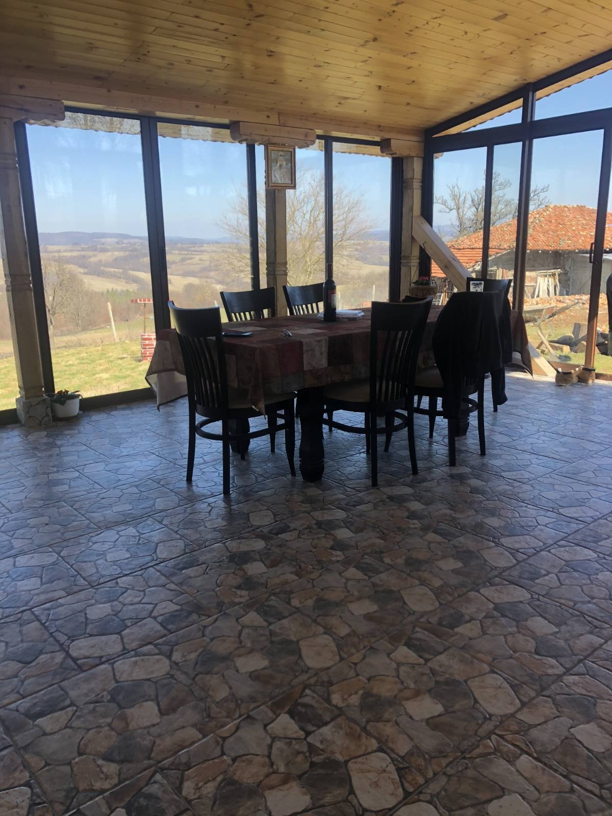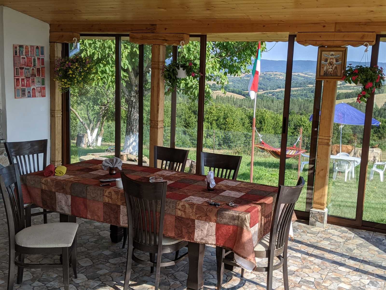 Огромен хол, 4 спални и голяма кухня, напълно оборудвана. Дворът е 3 декара УПИ. Къщата се отоплява с локално парно на газ и се управлява дистанционно. В цистерната се събират 3,5 тона газ. Денонощно видеонаблюдение. Има маза и външен склад. Бизнесът е работил до началото на 2025, като цената на нощувките е била 400 лева. Височината на долния етаж е по-ниска от стандартното. Имотът се продава с обзавеждането и е в състояние, в което може да се ползва веднага.