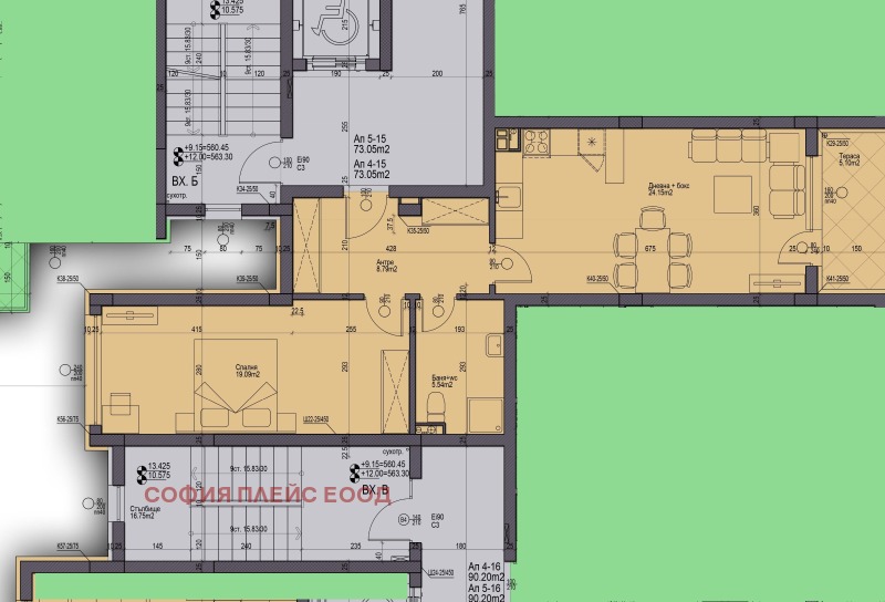 намалява времето за паркиране. Апартамент 5-15 е разположено на пети етаж. Изложение Изток/Запад.