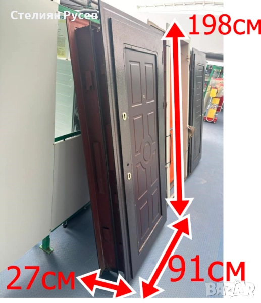 91/198см е вътрешен размер на вратата , 27см е широка касата, лайсните (первазите са по +8/10 см)