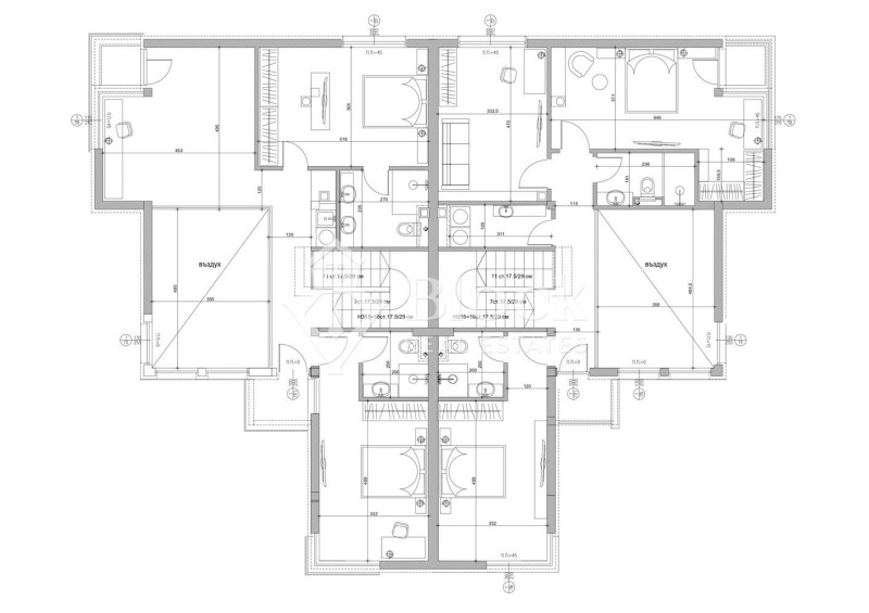 ЕТАЖ 2 - Две спални, всяка разполагаща със собствена баня с тоалетна и помещение подходящо за кабинет или трета спалня.