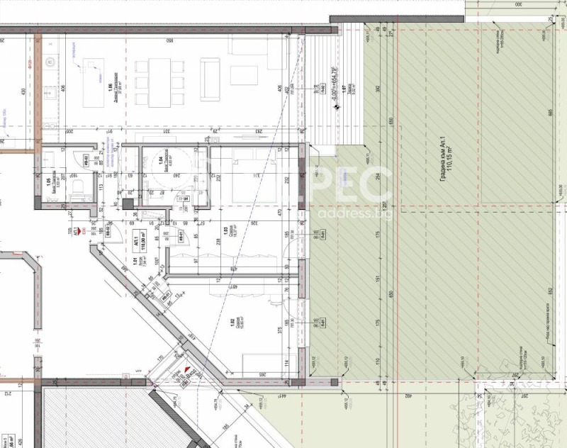 Просторна дневна зона с много светлина.