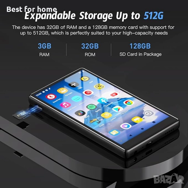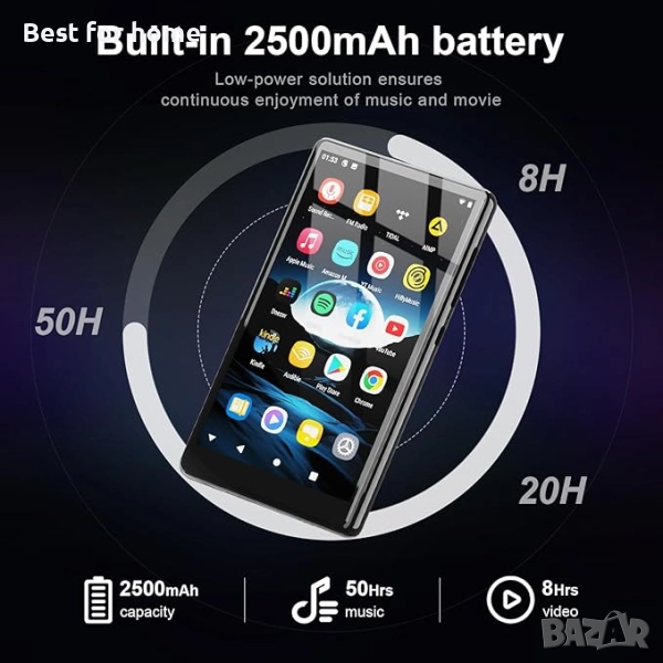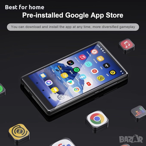 MP3 плейър --- Този музикален плейър е предварително зареден с най-популярните онлайн музикални приложения, включително Amazon Music, Spotify, Audible, Deezer,