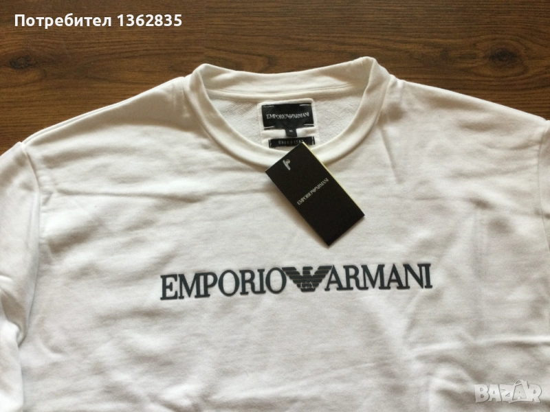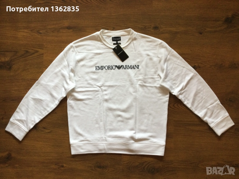 Продавам чисто НОВА оригинална бяла памучна луксозна дизайнерска мъжка блуза / фланела / горнище / екип на EMPORIO ARMANI / Емпорио Армани . Блузата е шита на ишлеме в България и е 100 % оригинална .