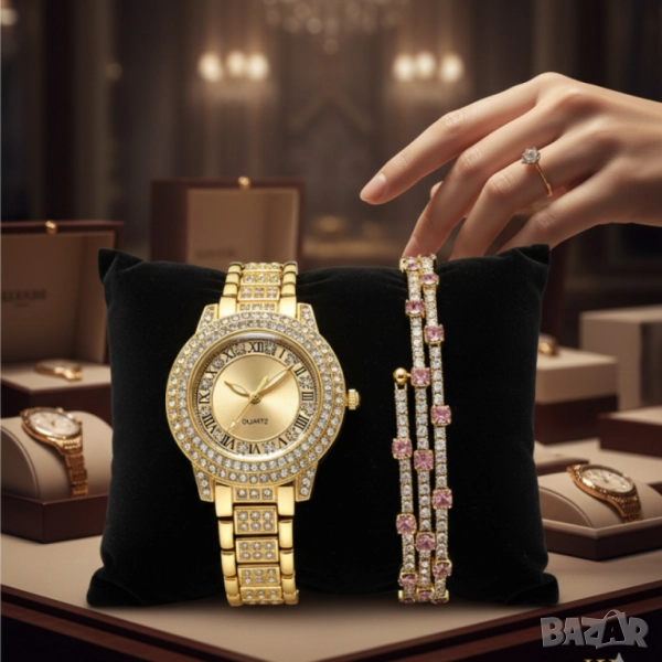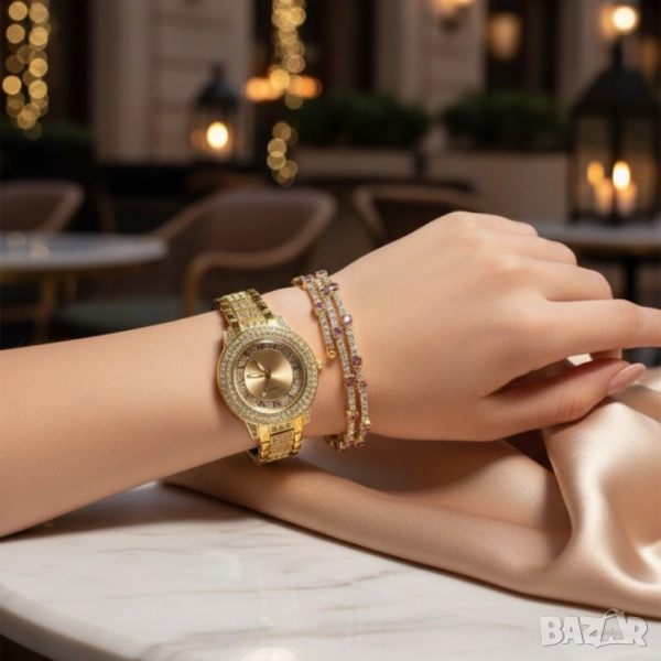 Бляскав дамски комплект часовник и гривна – съчетава елегантност и практичност