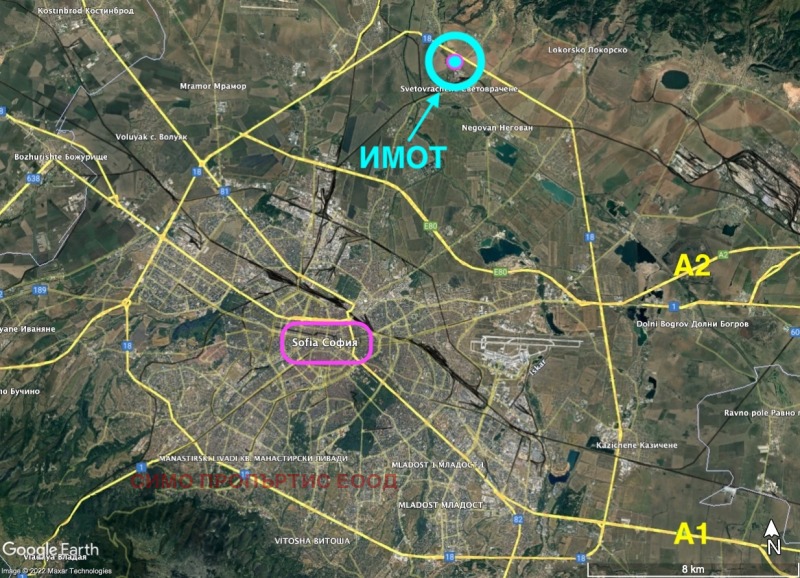 Агенция за недвижими имоти Симо Пропъртис продава имот с предназначение за търговско и промишлено строителство в района на с. Световрачене. Имотът се намира с голямо лице - 61 мвтра на северния околовръстен път на София.