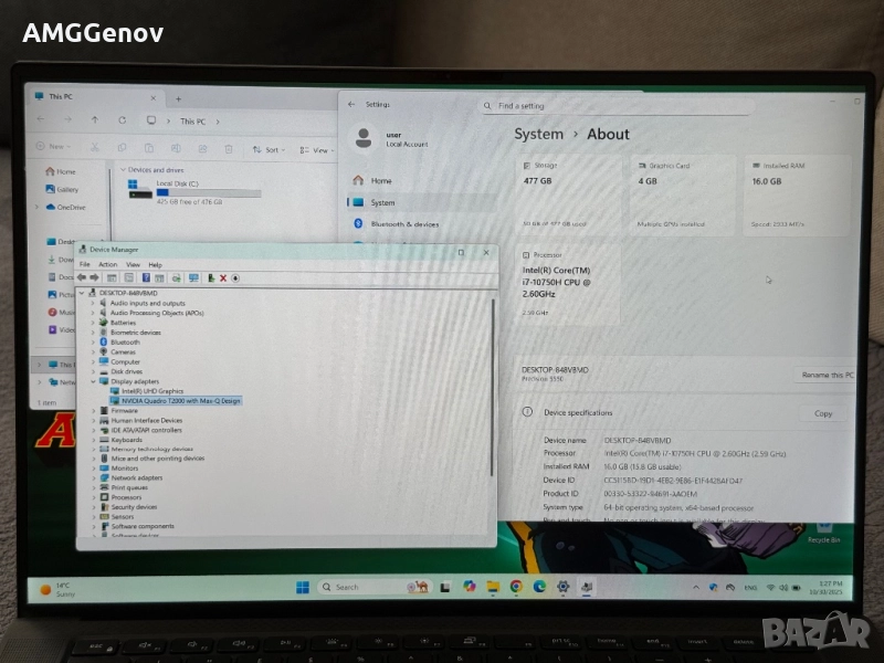 Жестока работна станция от високата 5-та серия на Dell Precision с изцяло метален корпус и карбонов топкейс.Разполага с мощен 6-ядрен процесор Intel Core i7-10850H,бърза 32GB DDR4 рам памет и светкавично 512GB SSD Nvme.Най-впечатляващ е 15.6 инчовият Full HD+ IPS 500 нита екран със супер ярки и наситени цветове,видими от всеки ъгъл.Nvidia Quadro T2000 Max-Q 4GB GDDR6,видео карта,подходяща за тежки програми.Снежно бяла подсветка на клавиатурата.