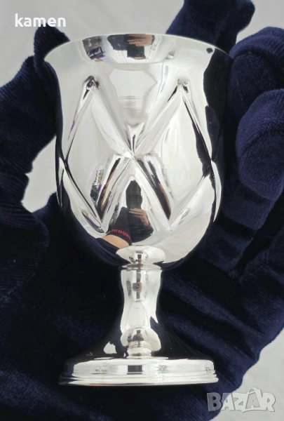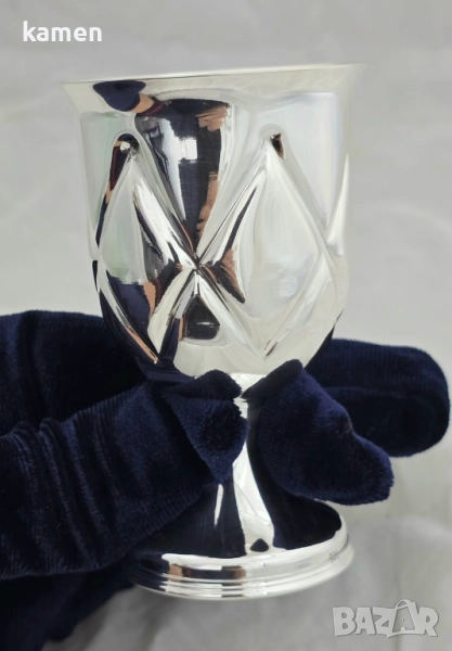 Ръчно изработена сребърна чаша с орнаменти в ромбовиден мотив