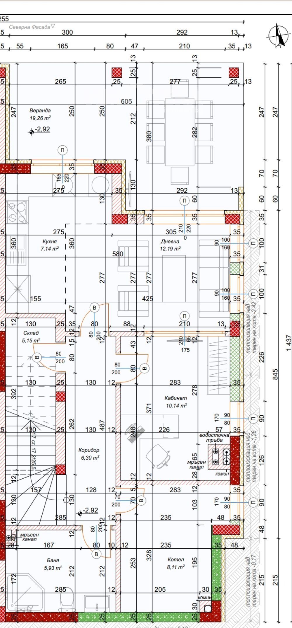 На ниво -1 са разположени котелно, санитарно помещение, кабинет, дневна с кухня и веранда с директен излаз към двора, като това може да бъде преустроено в родителски апартамент.
