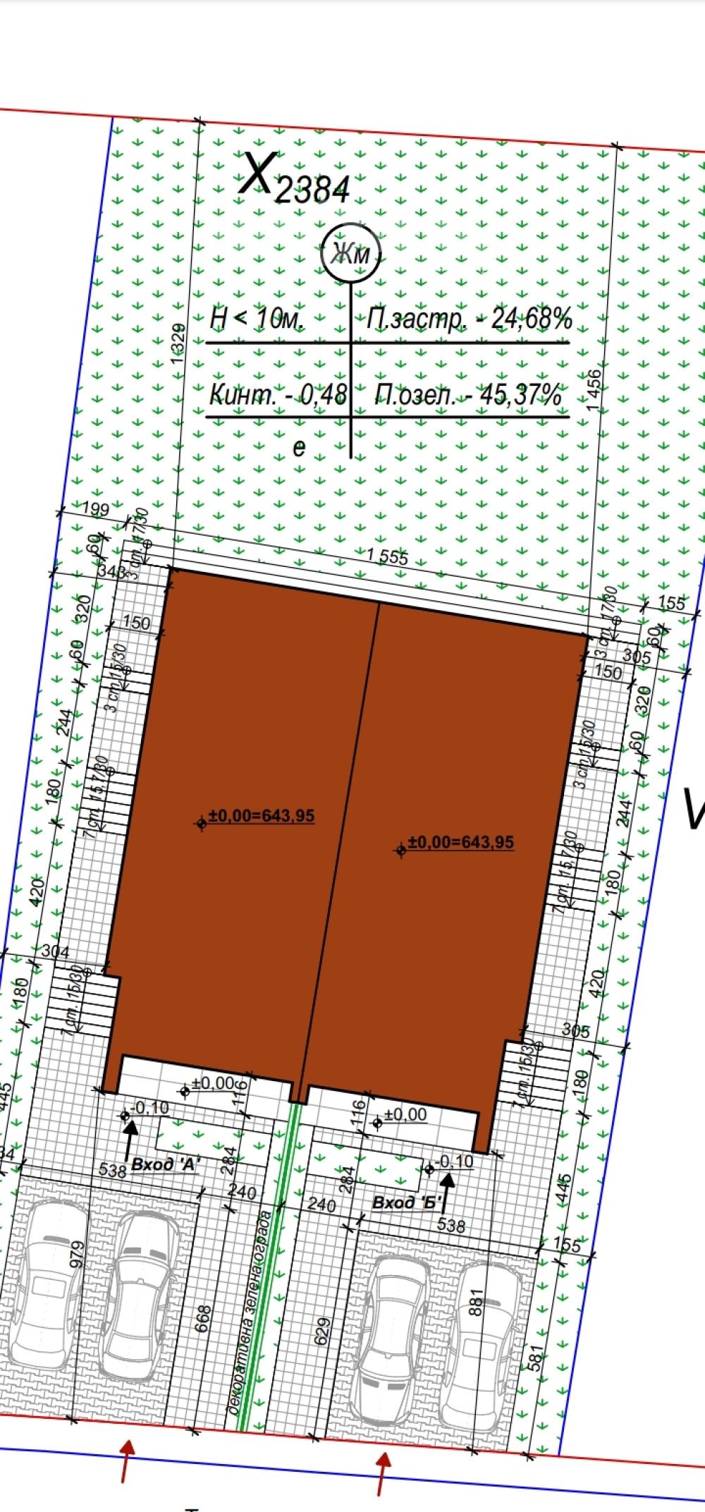 Нова къща с разгърната застроена площ от 265 кв.м. Площ на парцела 365 кв.м,.