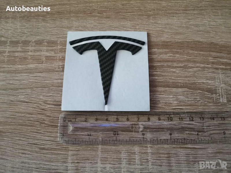 ново карбоново лого за модела 3 на Tesla за багажник. Размерите са дадени на снимките.
