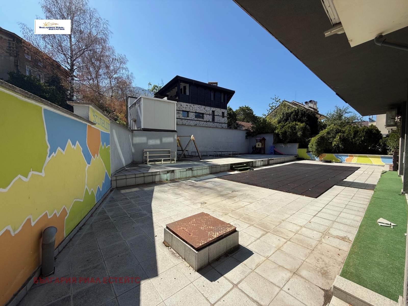 Има обособен двор - 300 кв.м, който е част от общите части, но се ползва ексклузивно.