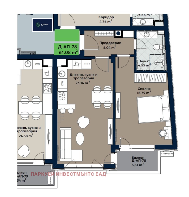 За повече информация и организиране на оглед, моля, посетете сайта на проекта - www.ParkWay.City или се обадете на тел. +359 876 402 207 или +359 876 019 946.