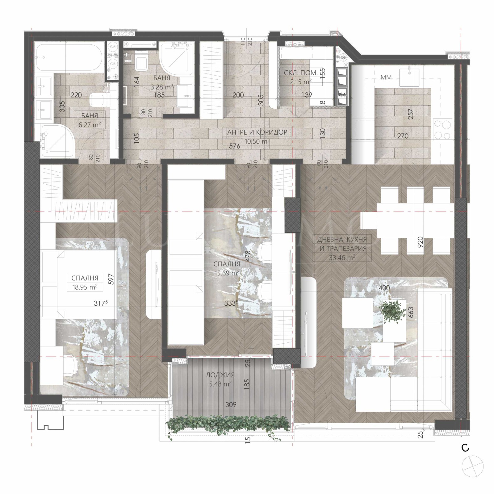 В ПРОЦЕС НА СТРОИТЕЛСТВО. ЕКСКЛУЗИВНИ ПРОДАЖБИ. БЕЗ КОМИСИОНА. Планиран Акт 16 - края на 2027 г. Synerga Premium Complex - пространство за живот, вдъхновено от природата и града! В сърцето на кв. 'Младост' и само на крачки от две метростанции. Комплексът разполага със собствена, богато озеленена паркова среда, луксозни общи части, представително фоайе и 3 високоскоростни асансьора. Южно изложение и гледка към Витоша и вътрешен двор. Отопление на ТЕЦ и инсталация за климатици. Светла височина на жилищата - 2.68 м. Предлагаме двустайни, тристайни и четиристайни апартаменти. Паркирането е решено чрез големи подземни гаражи с възможност за монтаж на зарядна станция за електроавтомобили. Окачена фасада, топло- и шумоизолация между апартаментите и алуминиева дограма с троен стъклопакет. Жилищата се издават по БДС. Апартамент 1105 е разположен на 11-ти етаж и има благоприятно южно изложение. На чиста площ от 109.28 кв.м са разпределени: антре, мокро помещение, две бани с тоалетни, просторна дневна с кухня и трапезария, две спални, тераса с излаз от трите стаи. Гъвкави схеми на плащане.
