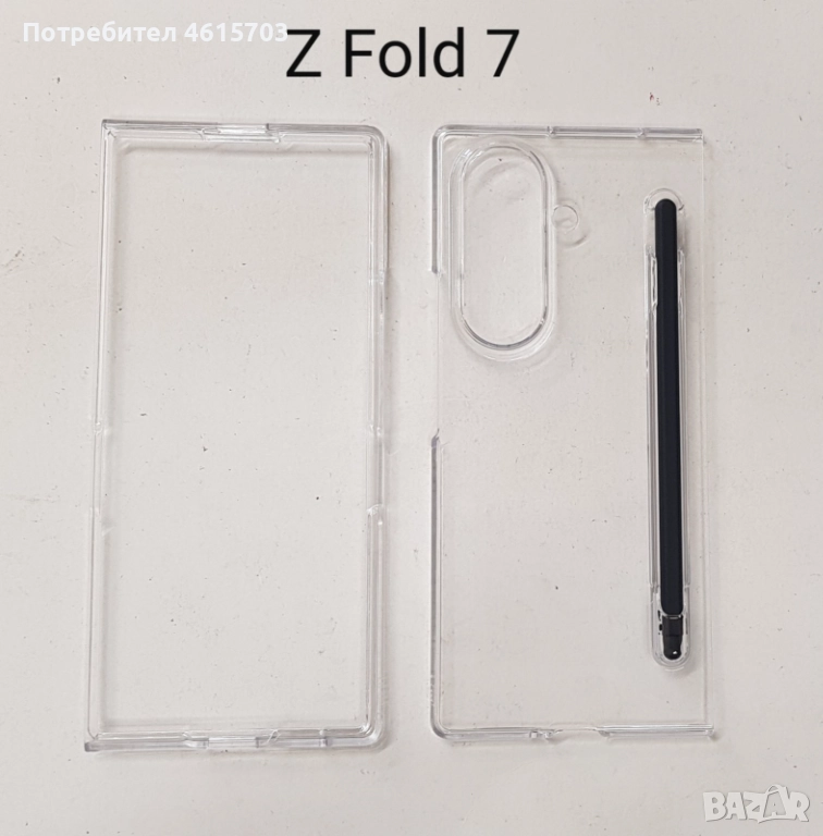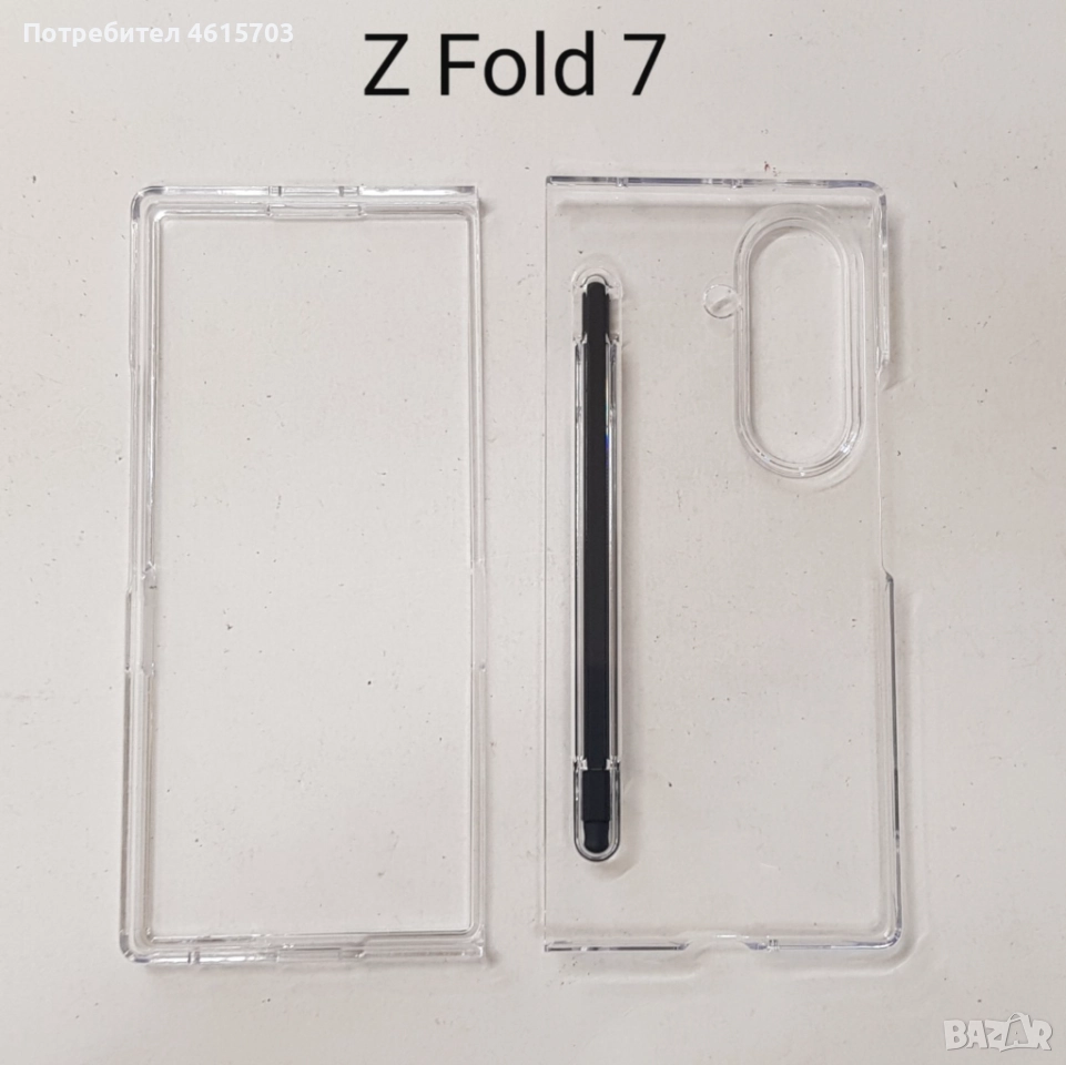 Пластмасов калъф с писалка за Z Fold 7 (прозрачен, черен) → Обява 51978562