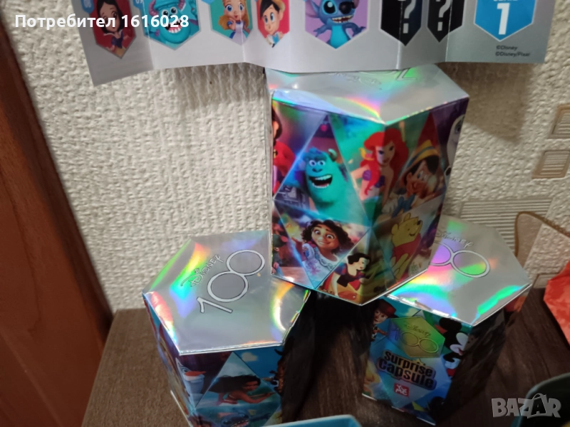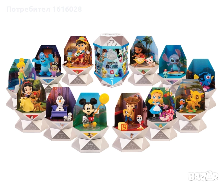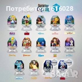Дисни. Перфектен подарък за всички фенове на Disney - малки и големи! Всяка капсула е обвита в ефектни кинематографични изображения на Дисни и съдържа емблематичен герой. Има 14 героя за събиране, включително 2 редки героя. След разопаковане ще откриете своя вълшебен герой на Дисни и 7 удивителни изненади. Първо трябва да използвате вода, за да разкриете уликата върху картата с магическа улика. След това ще трябва да изтриете втората карта с улики, за да разкриете следвата улика. В капсулата ще намерите колекционерска карта, в която са изброени всички герои за събиране. И накрая, вътре в тайната стая ще намерите три специални пакета - един включващ вашия герой, един включваш основен аксесоар, който върви с вашия герой и един включващ второстепенен аксесоар. След като вашия герой бъде разкрит, можете да трансформирате магическата си капсула в сцена, за да покажете своя герой.