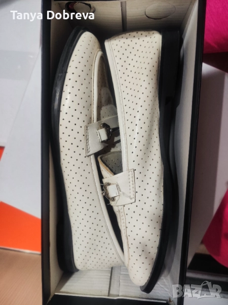 Бели, равни обувки от естествена кожа, размер 36, обувани са 2-3 пъти.
