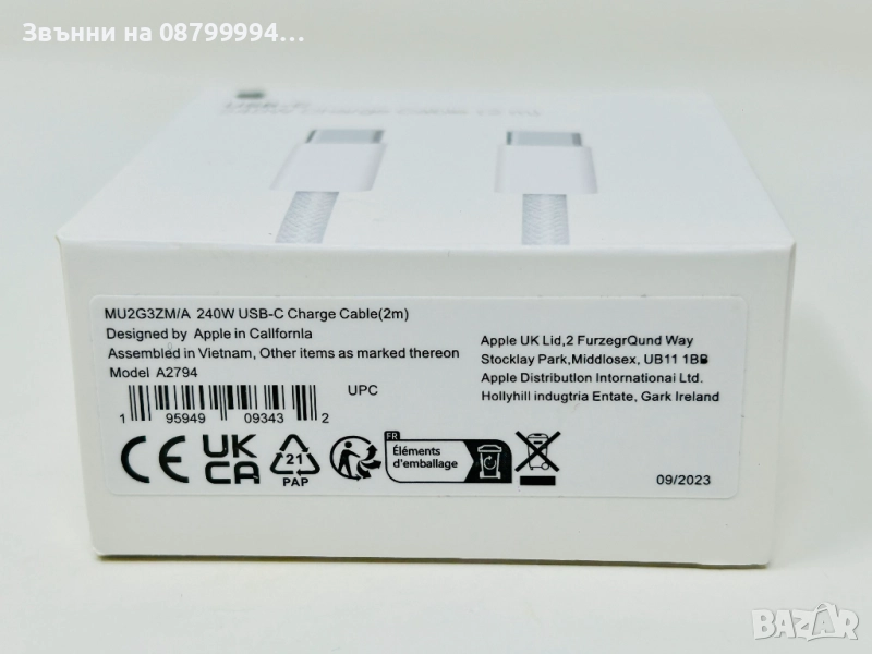 Оригинален Кабел Зарядно за Apple iPhone iPad Usb C to Usb C 240W.