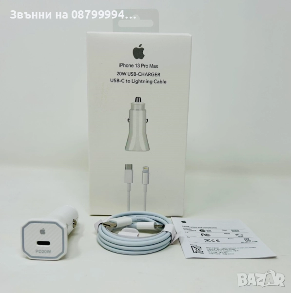Оригинален комплект за кола Кабел USB C to Lightning и Зарядно 20W