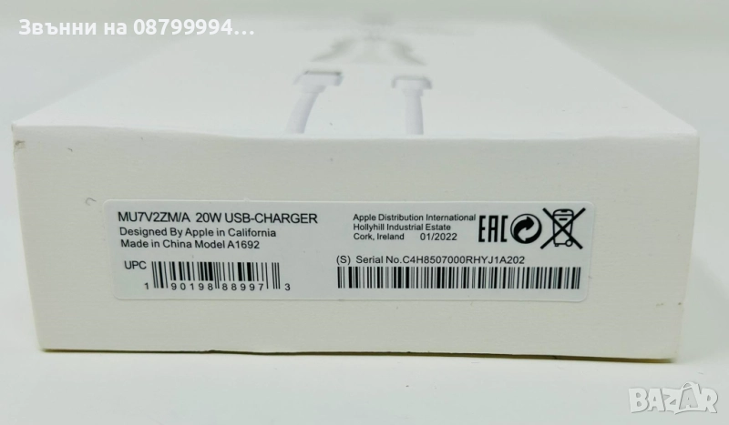 to Lightning и Зарядно 20W за iPhone, съвместим с от iPhone 7 до 14 Pro Maxq