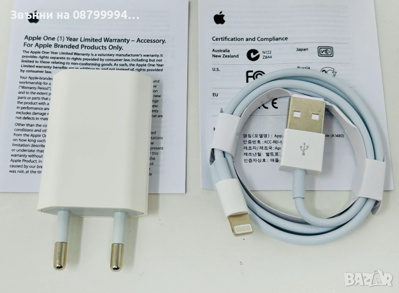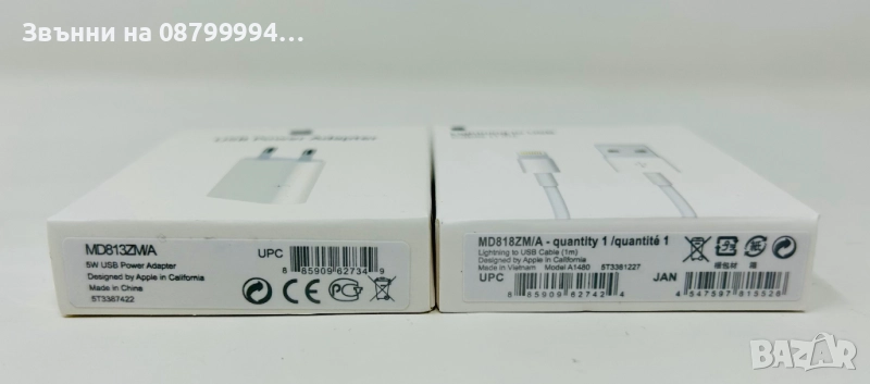 Оригинален Комплект Кабел USB - A to Lightning 1m и Адаптер Зарядно5W