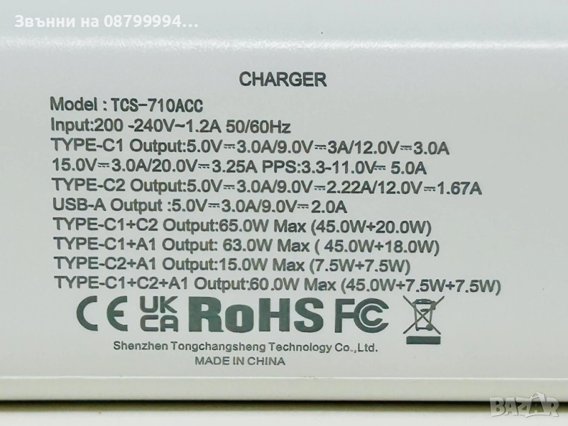 USB - C and Usb - A 3in1 65W/20W RoHS