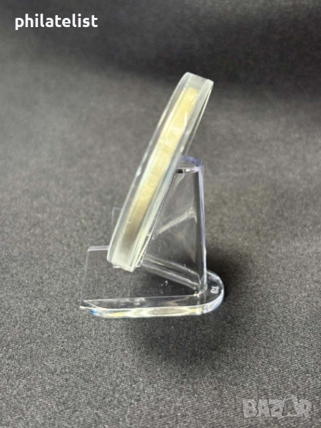 Триъгълна стойка, изработена от силно прозрачна пластмаса за монети, медали, капсули и др.