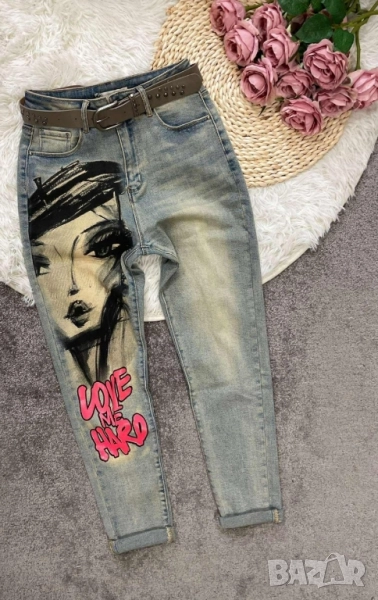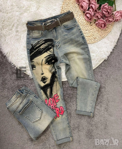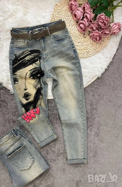 Дънки LFS Unique 9947 59.90лв. (30.63€) Материя: Деним с голяма еластичност ( 92% памук, 6% полиестър, 2% еластан ) Кройка: Кройката е тип “Mom’s” с висока талия и стесняващи се крачоли, декорирани с любимите ни хенд – мейд рисунки #LFS Стилистите съветват: Любима кройка, защото е подходяща за всеки момент от парти до разходка в парка. Точно тези са с висока талия, тотално хитов цвят и супер стилен дизайн! Излишно е да казваме, че са в графа #musthave, но ако все пак се чудите дали имате нужда от тях и с какво ще ги съчетаете, казваме Ви – да, имайте ги и ги носете смело с всичко в гардероба си от ризи, до дантелени блузи или oversize тениски. Дължина: Цяла дължина 90 см, дължина от вътрешната част на крачола 65 см Коланът е подарък към всеки чифт Размер на снимката – S Хс С М Л хл