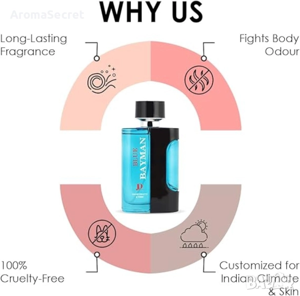 Открийте синята безкрайност: Blue Bayman ви въвежда в магията на сините далечни води. Неговият аромат е съчетание от свежи морски бриз и меки дървесни нотки, които ви носи усещане за свобода и широки простори!