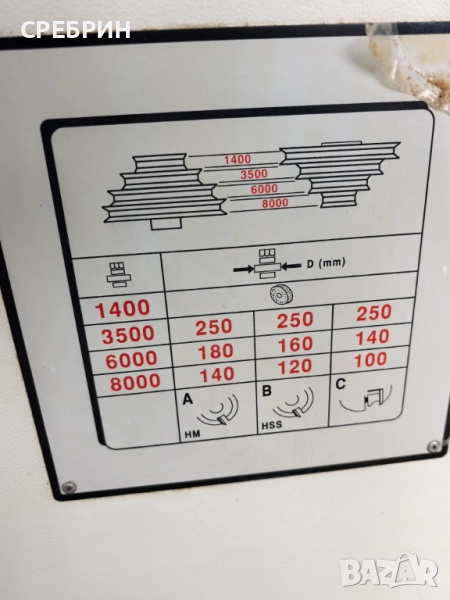 В наличност италианска фреза с 4 вида обороти мотор 4кв шпиндел ф 50 мм, при желание на клиента може да се намали на ф 30мм, машината е в топ състояние, имам на склад още 10 бр други фрези и +други над 110 машини.