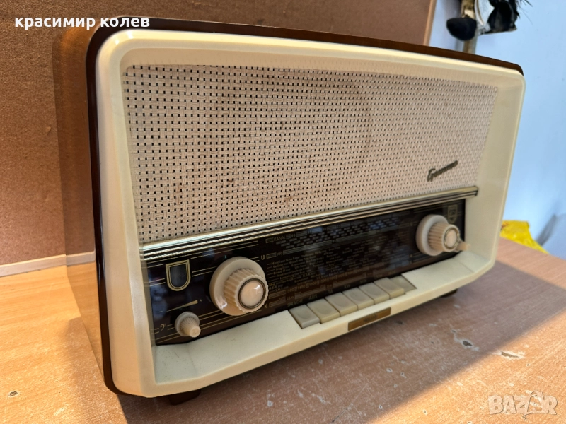 Апаратът е като нов.Технически изправен ,с изключение на лампата на предния панел , която не свети.Радито е със средни размери.