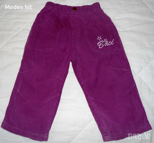 3. Цена 4 лв. Джинси с памучна подплата. Размер 80 см. Отлично състочние.Дължина 46/28,5 см., талия на ластик /копчето е само декоративно/ от 20 до 31 см., ханш 35,5 см.