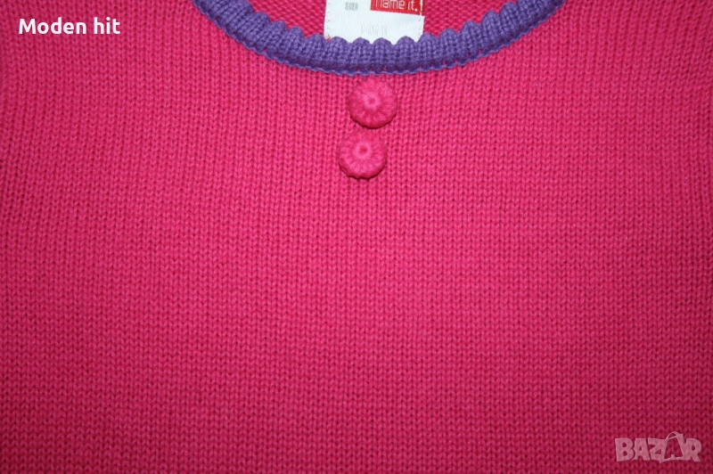 забележки. Цветовете са цикламено и лилаво с цветни топчета от прежда в долната част. Дължина: 51,5 см. Ширина мишници: 29 см.