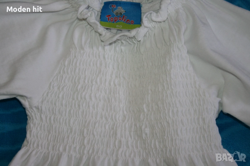 2. Цена 3 лв. Topolino - туника с дълъг ръкав. 100% памук. Отлична, без забележки. Дължина: 34 см., от мишницата: 20,5 см. Ширина мишници: от 19,5 до 40,5 см. Ширина в долната част на ластика: от 21 до 40 см. Ширина най-долу: 39,5 см. Ръкав от врата: 34,5 см., от мишницата: 28,5 см.
