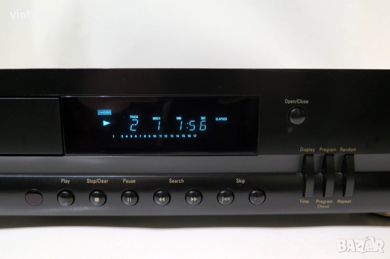 Стерео компакт диск плеър, отличен технически, много добър външен вид. Разчита матрични и записани аудио дискове. Дистанционно управление не е налично. Приложените снимки и видео са реални!