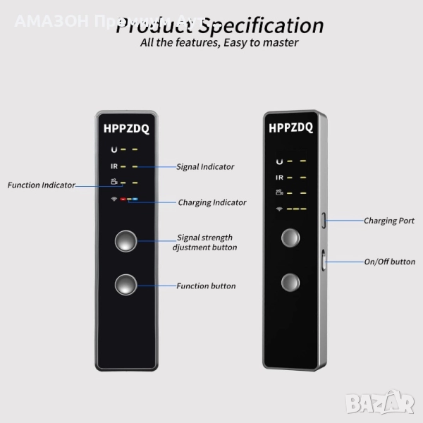 HPPZDQ 4-в-1 Детектор за скрити камери, GSM/RF/GPS тракери/подслушвателни устройства