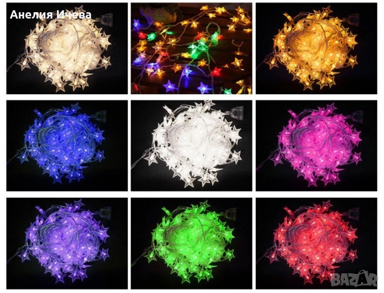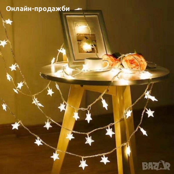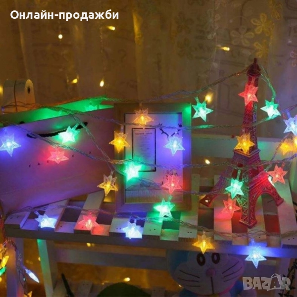 Светещи Коледни LED лампички със звездички → Обява 51982776