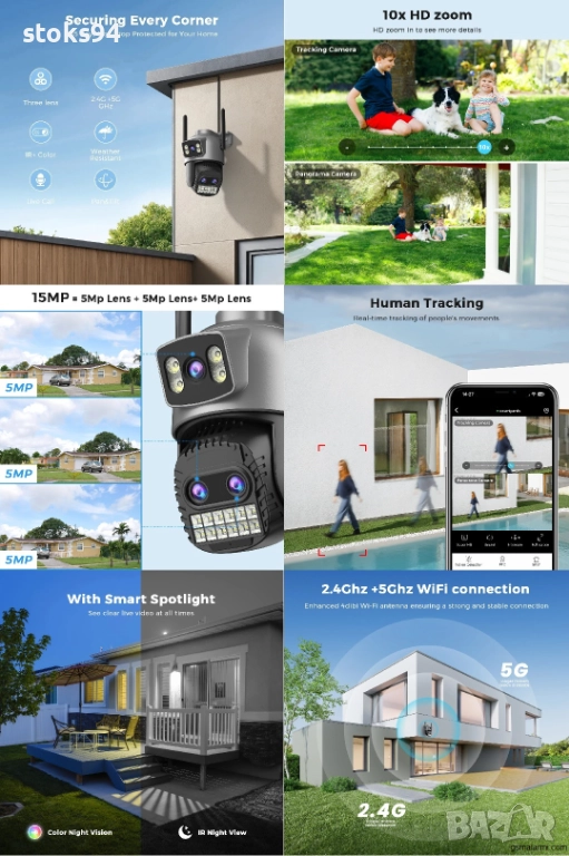 Промоция:15MP WiFi безжична камера, 4K Ultra HD, 3 обектива, 10X реално цифрово увеличение, AI
