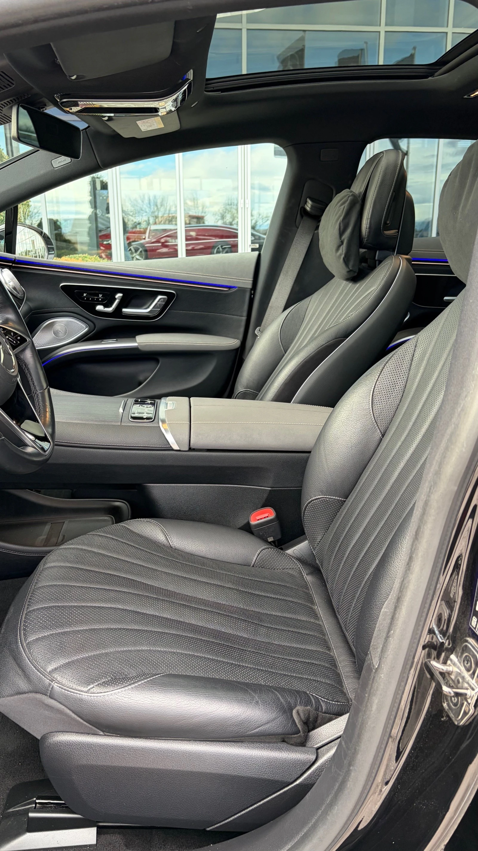 Цвят: 197 обсидиан черен металик Тапицерия: 201 ест. кожа, черно / космическо сиво 878 Активно амбиентно осветление 897 Безжично зареждане за мобилни устройства 16P Автомобил за въвждане модела на пазара 31U Pre-installation for GUARD 360° Services 324 Непрекъсната рефлекторна ивица отпред 242 Ел. регулируема предна дясна седалка с памет PAF Пакет " Акустичен комфорт" 72B Пакет " USB Plus" 587 Амбиентно осветление с проектиране логото на марката 551 Алармена инсталация 436 Комфортни подглавници за предните места 83B Система за зареждане с прав ток (DC charging) 287 Сгъваеми облегалки на задните седалки P17 Пакет " KEYLESS-GO комфорт" 581 Автоматична климатична инсталация THERMOTRONIC 351 Mercedes-Benz система за аварийни повиквания 318 DIGITAL LIGHT 489 AIRMATIC въздушно окачване U19 Дигитална екстра: MBUX Добавена реалност за навигация PAG MBUX Hyper Screen 292 PRE-SAFE® Impulse Side (странично отместване) 14U Пакет " Смартфон интеграция" B53 Акустична защита за зоната около автомобила 233 Активен асистент за дистанция DISTRONIC 290 Въздушни възглавници за страничните стъкла 431 Галванизирани планки на волана за превключване на предавките 543 Сенници с телескопична ос 294 Въздушна възглавница за коленете 17U Android Auto PDD Пакет " Premium Plus" с Дигитални екстри 22U Подготовка за MBUX Entertainment 243 Активен асистент за лентата за движение 272 Асистент за избягваща маневра 16U Apple CarPlay K32 Активен асистент за смяна на лентата 500 Ел. сгъваеми външни огледала 401 Климатизирани предни седалки 7U2 Луксозни седалки 889 KEYLESS-GO 810 Озвучителна система Burmester® 3D surround sound 546 Активен асистент за лимита на скоростта K33 Увеличен толеранс при потегляне при Stop& Go трафик 365 Дигитална екстра: Навигация от твърд диск 871 HANDS-FREE ACCESS 275 Пакет " Мемори" 882 Обемни датчици за алармената инсталация U01 Индикация за статуса на коланите за задните места в инструменталния панел 266 Активен кормилен асистент P21 Пакет " AIR-BALANCE" 13U Подготовка за Дистанционни и навигационни услуги 325 Централно разположена въздушна възглавница 29R Алуминиеви джанти 20'' (50, 8 см), дизайн 5 спици 537 Цифрово радио 262 Сензори за лентата за движение в задната част на купето L2B Мултифункционален волан в кожа напа 33U Дигитална екстра: Дистанционни услуги Plus 443 Ел. отопляем волан K34 Адаптиране на скоростта в зависимост от маршрута и трасето 891 Амбиентно интериорно осветление 79B Подготовка за дигитално радио 249 Огледала (централно и ляво) с автоматично затъмняване при заслепяване 384 Комуникационен модул за услугите Mercedes me connect (LTE Advanced вариант) P53 Пакет " ENERGIZING AIR CONTROL Plus" P14 Electric Art, интериор 876 Пакет " Интериорно осветление" 8U8 i-Size система за закрепване на детски столчета 444 Head-up Display 01U Дигитална екстра: Подготовка за Навигационни услуги 235 Активен асистент при паркиране 241 Ел. регулируема предна лява седалка с памет P20 Пакет " Асистиращи системи PLUS" 309 Адаптивна стойка за бутилки 367 Дигитална екстра: Подготовка за Live Traffic Information H08 Декоративни елементи от липа с линейна структура 201 Завиваща задна ос, ъгъл до 4, 5° 215 Окачване с адаптивни регулируеми амортисьори PBF MBUX Навигация Plus 413 Панорамен електрически люк P49 Пакет " Огледала" 840 Подсилено затъмнени тонирани задни стъкла P82 GUARD 360° Plus защита на автомобила с Дигитални екстри S89 Предварителна климатизация 501 360° камера 475 Система за следене налягането в гумите 321 Скенер за пръстов отпечатък 628 Асистент за адаптивни дълги светлини PLUS B59 Програми за шофиране DYNAMIC SELECT U10 Седалка на пътника с датчик за тегло U60 Защита на пешеходци 5B1