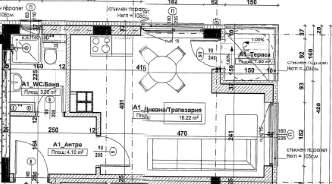 Чиста площ: 35.31 кв.м + мазе в сутерена на сградата - 1.5 кв.м.