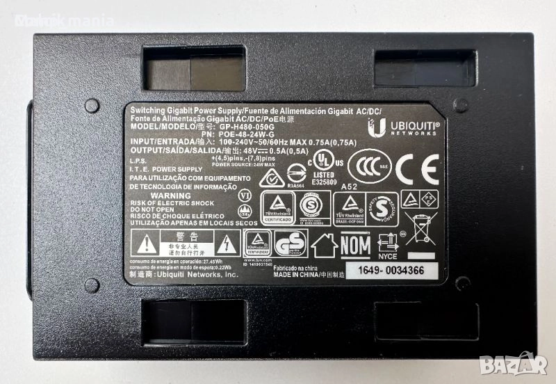 Гигабитов PоE инжектор Ubiquiti POE-48-24W-G → Обява 51984409