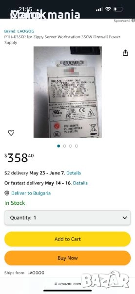 2 броя работещи захранвания от сървър / работна станция модела на захранването е P1H-6350P и цената е за едно захранване 40лева пазарната цена в амазон е 358долара